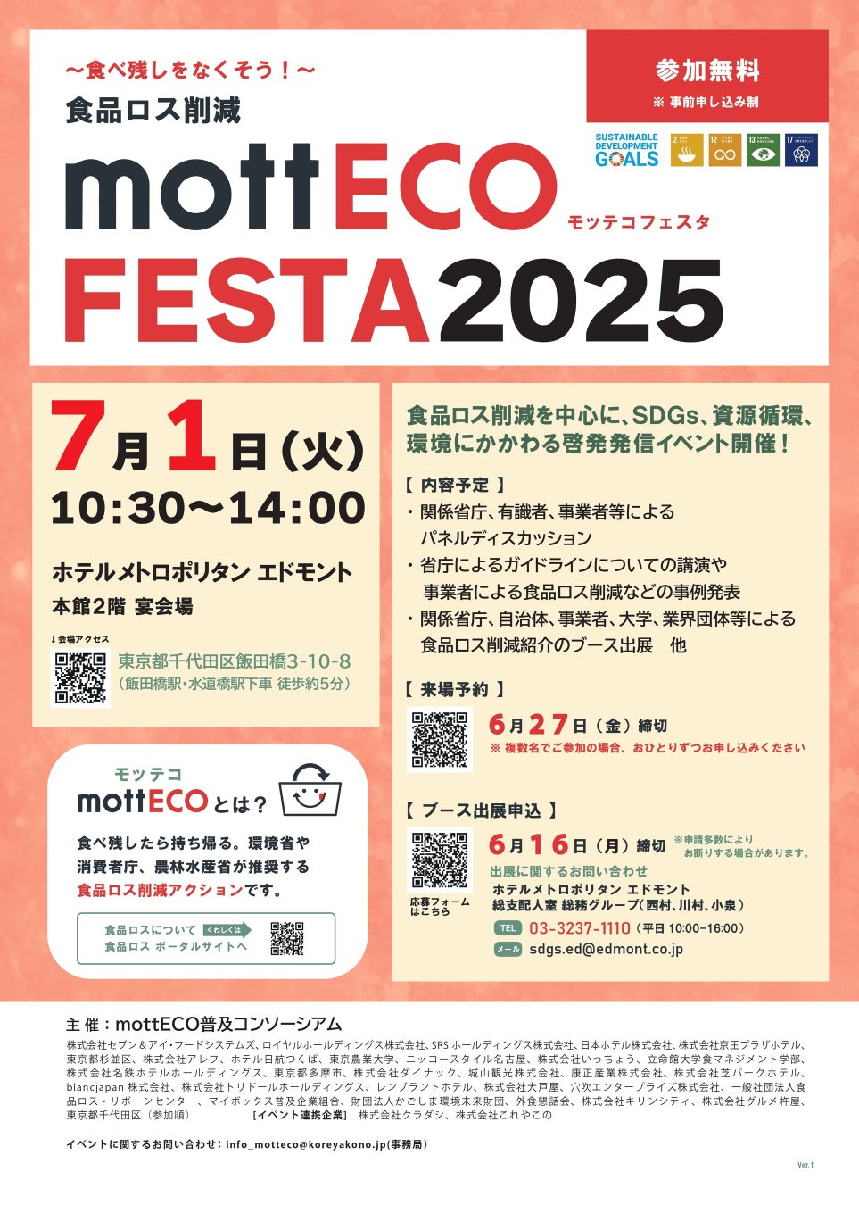 【日本ホテル㈱】食品ロス削減の啓発イベント「mottECO FESTA(モッテコ フェスタ)2025」開催!7月1日(火) ホテルメトロポリタン エドモントにて