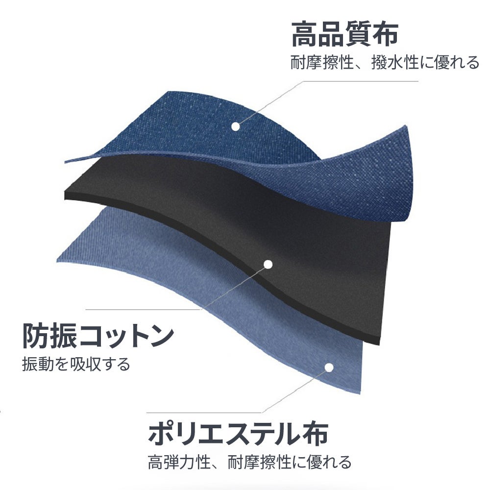 高品質布 : 耐摩擦性、撥水性に優れる。