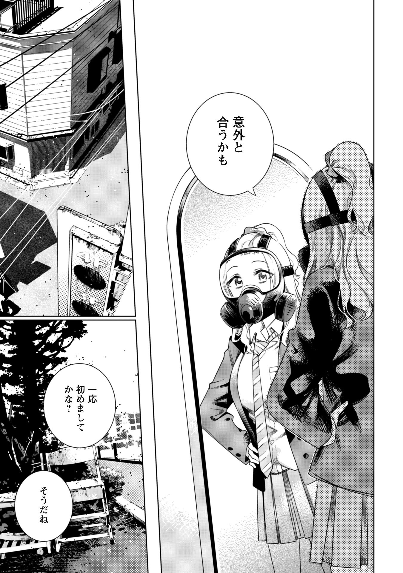 隕石落下の影響で外出が規制される世界で、ガスマスクを着けた少女3人の初登校が始まる――。