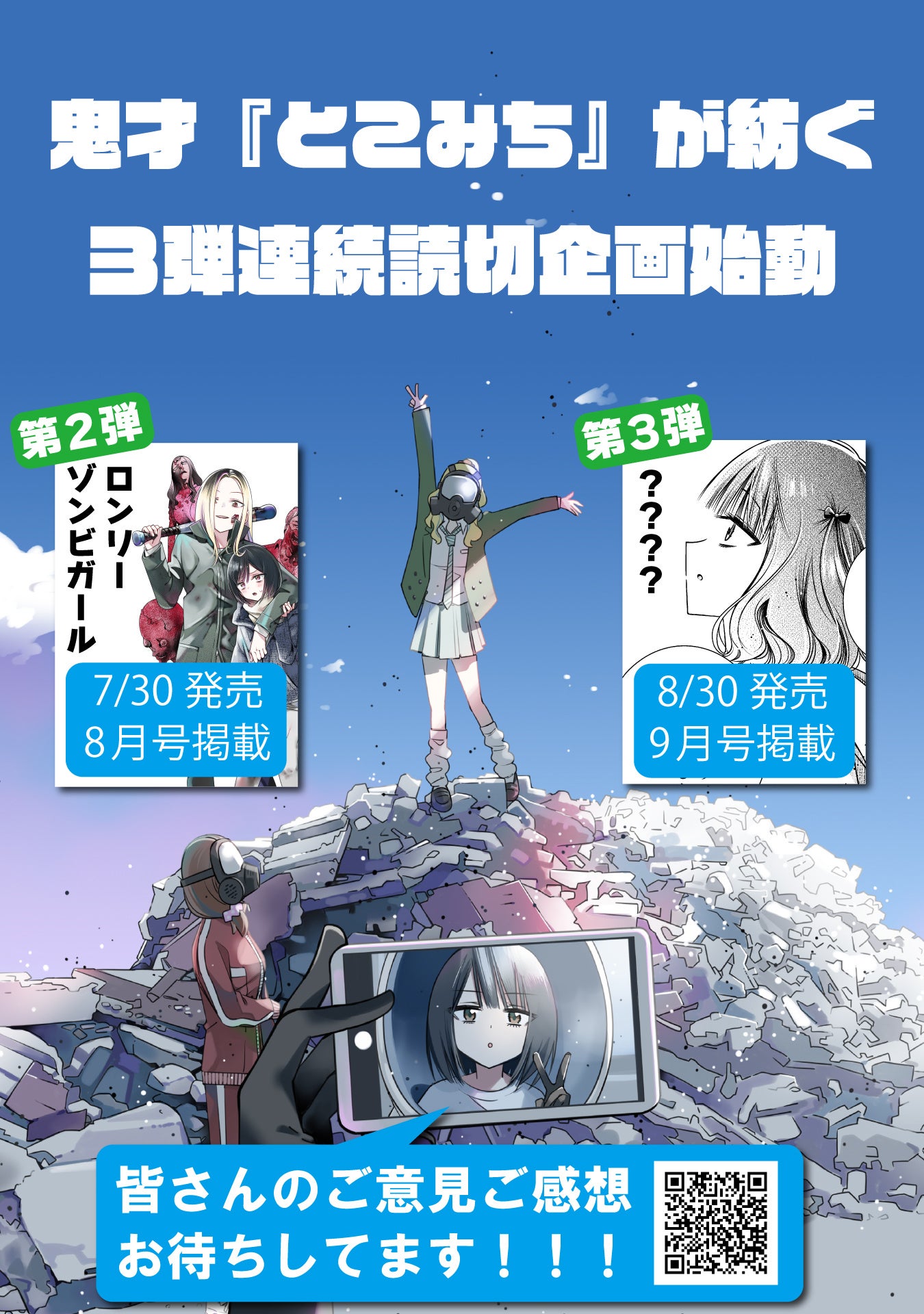 鬼才「とこみち」が放つ、ガールミーツガール×ポストアポカリプス読切作品群が、本日7月1日(月)配信のコミックライド7月号(vol.97)より3号連続掲載決定!