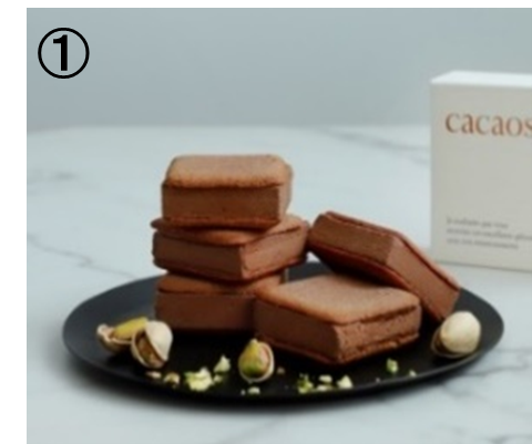〈cacaosic〉①cacaosic pistachio(4個セット) 1,576円、(6個セット) 2,365円、(8個セット) 3,153円、②生チョコレート ミルク(9粒) 2,197円/地階 MAP③