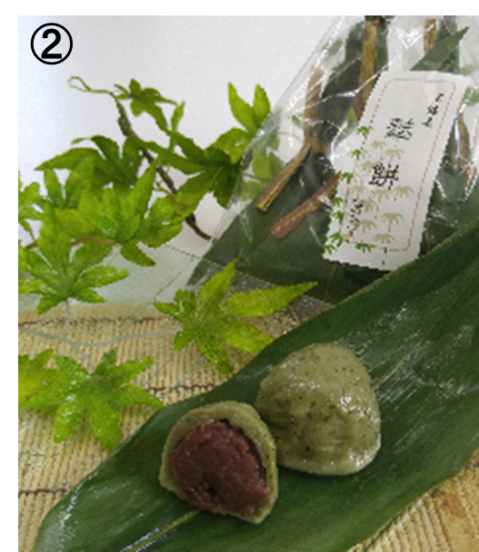 ②塩味でアクセントをつけたあんを使用し、もちもちなのにつるりとしたのど越しが特徴。笹の香りが爽やかな和菓子です。