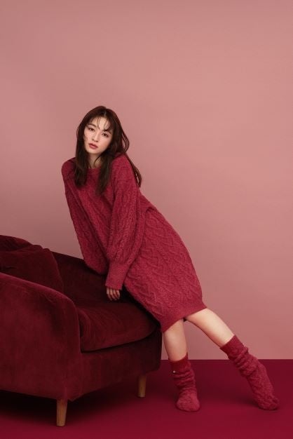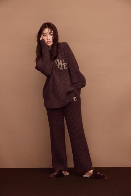 メンズとペアでコーディネートを楽しめる'ベビモコ’ニットのルームウェア。