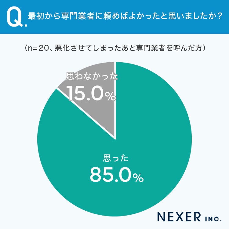 85%の方が、最初から専門業者に頼めばよかったと「思った」と回答しました。