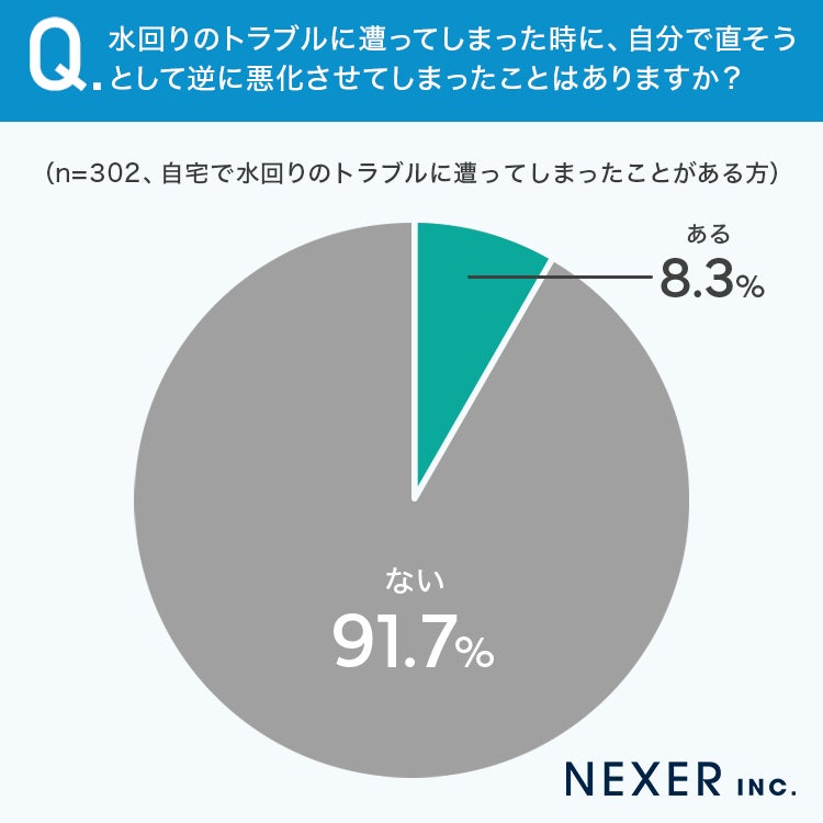■8.3%が、水回りのトラブルに遭ってしまった時に、自分で直そうとして逆に悪化させてしまったことが「ある」