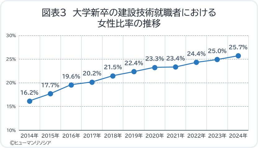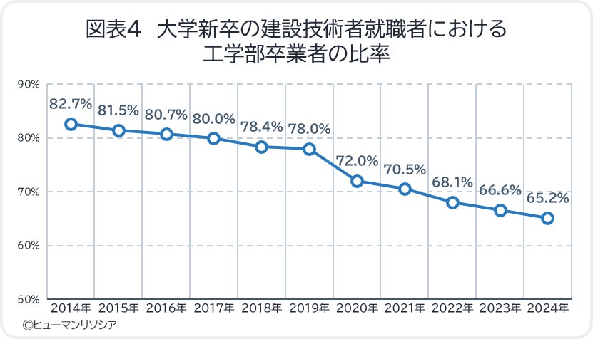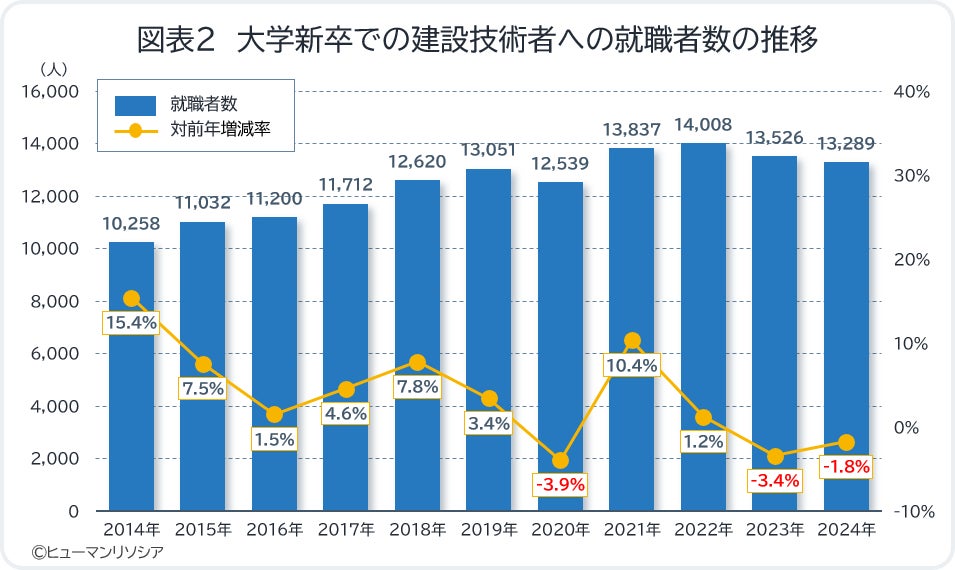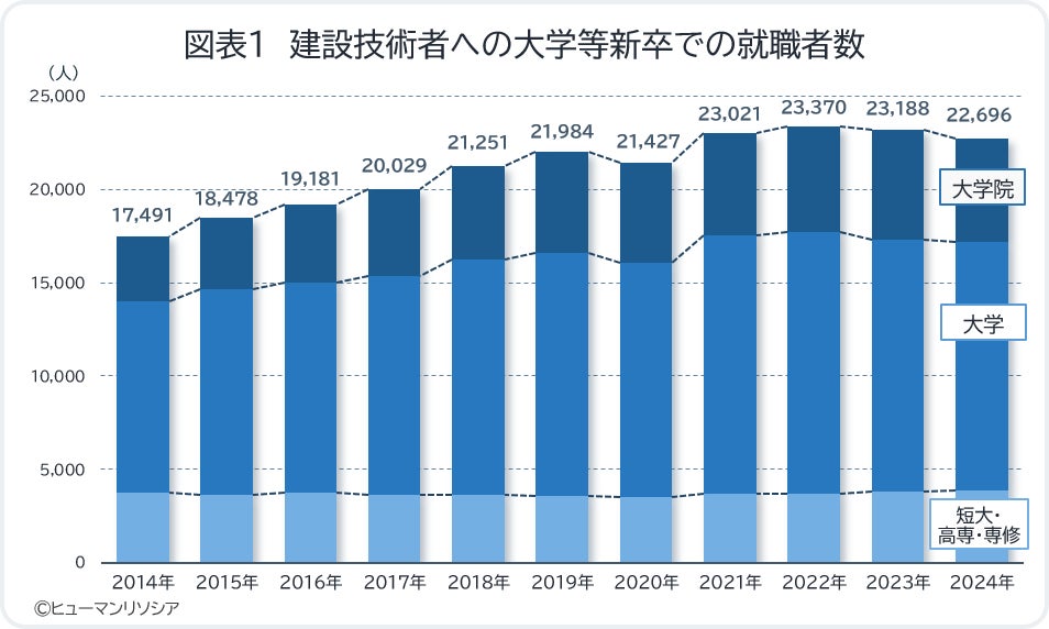総合人材サービス会社で、建設業向けの人材派遣・海外エンジニア派遣・人材紹介事業を展開するヒューマンリソシア株式会社(本社:東京都新宿区、代表取締役:高橋 哲雄、以下「当社」)は、建設業の人材動向について、統計データベースなどを基に独自集計し、レポートとして発表しています。このたび、建設技術者の重要な人材供給源である大学等の新卒就職者の動向について、最新の2024年実績をもとに分析した結果を、レポートとして発表します。