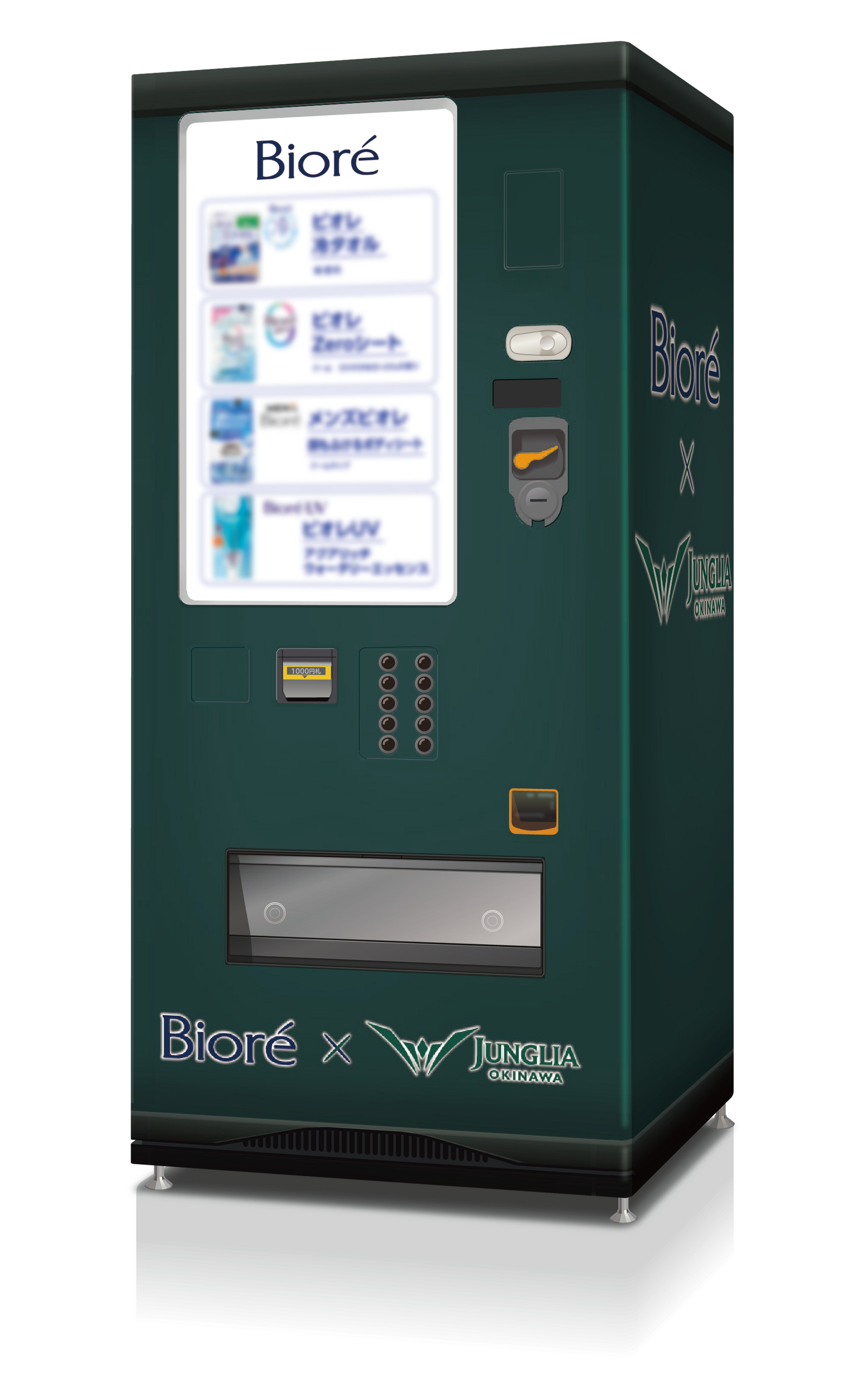 園内3か所に「ビオレ自動販売機」を4月28日(火)から順次設置し、『ビオレ 冷タオル』『ビオレZero シート』『メンズビオレ 顔もふけるボディシート』などを販売します。