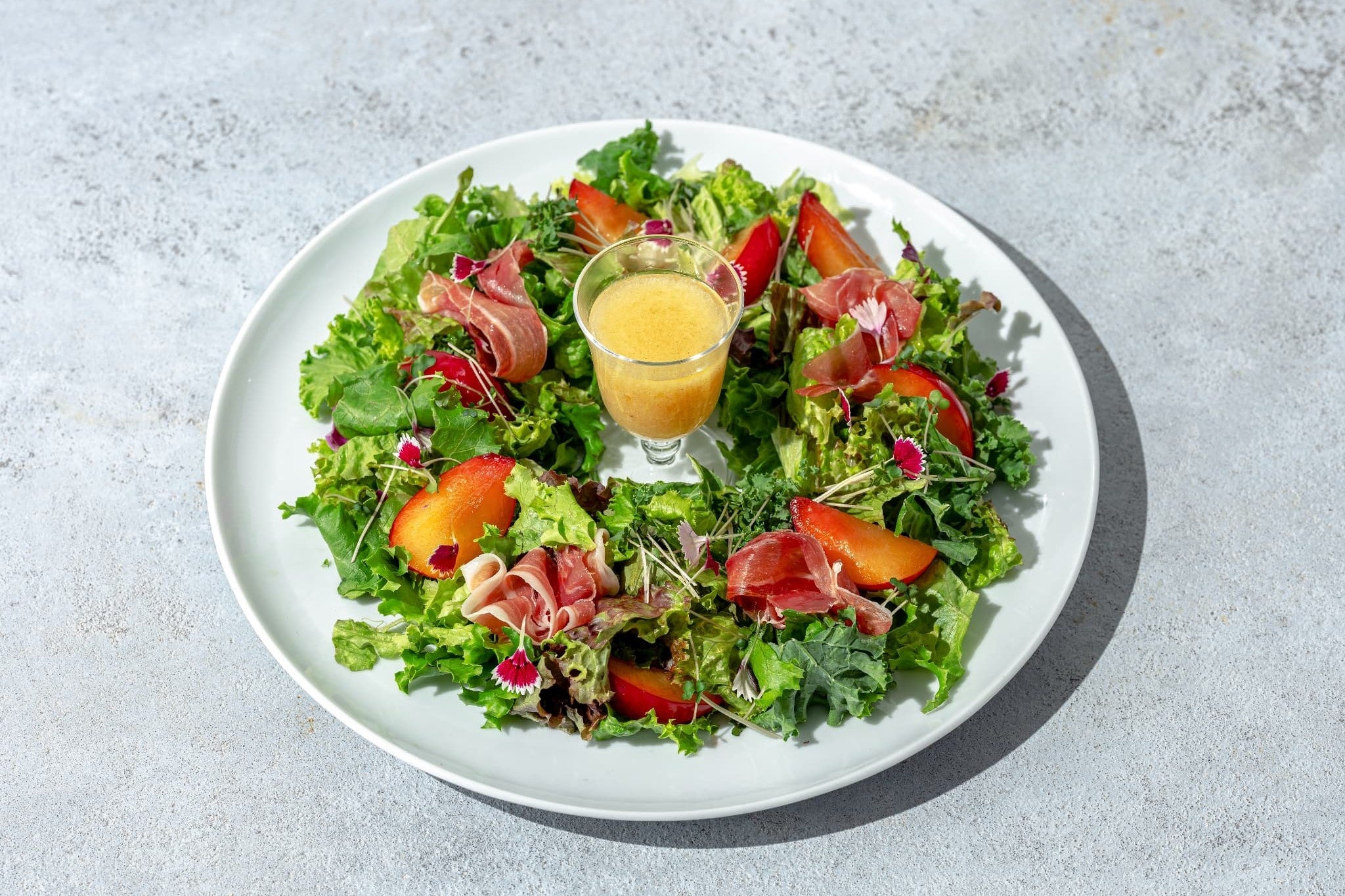 シーズナル彩りサラダ-プラム&生ハム&エディブルフラワー-