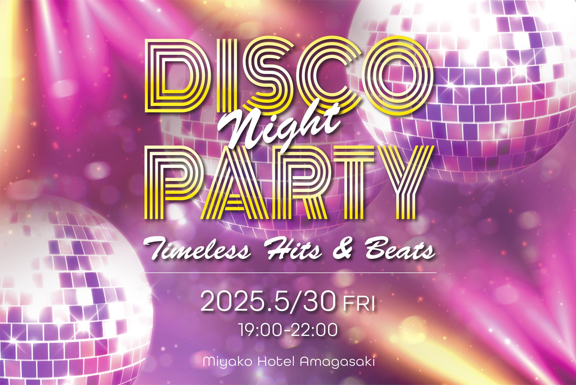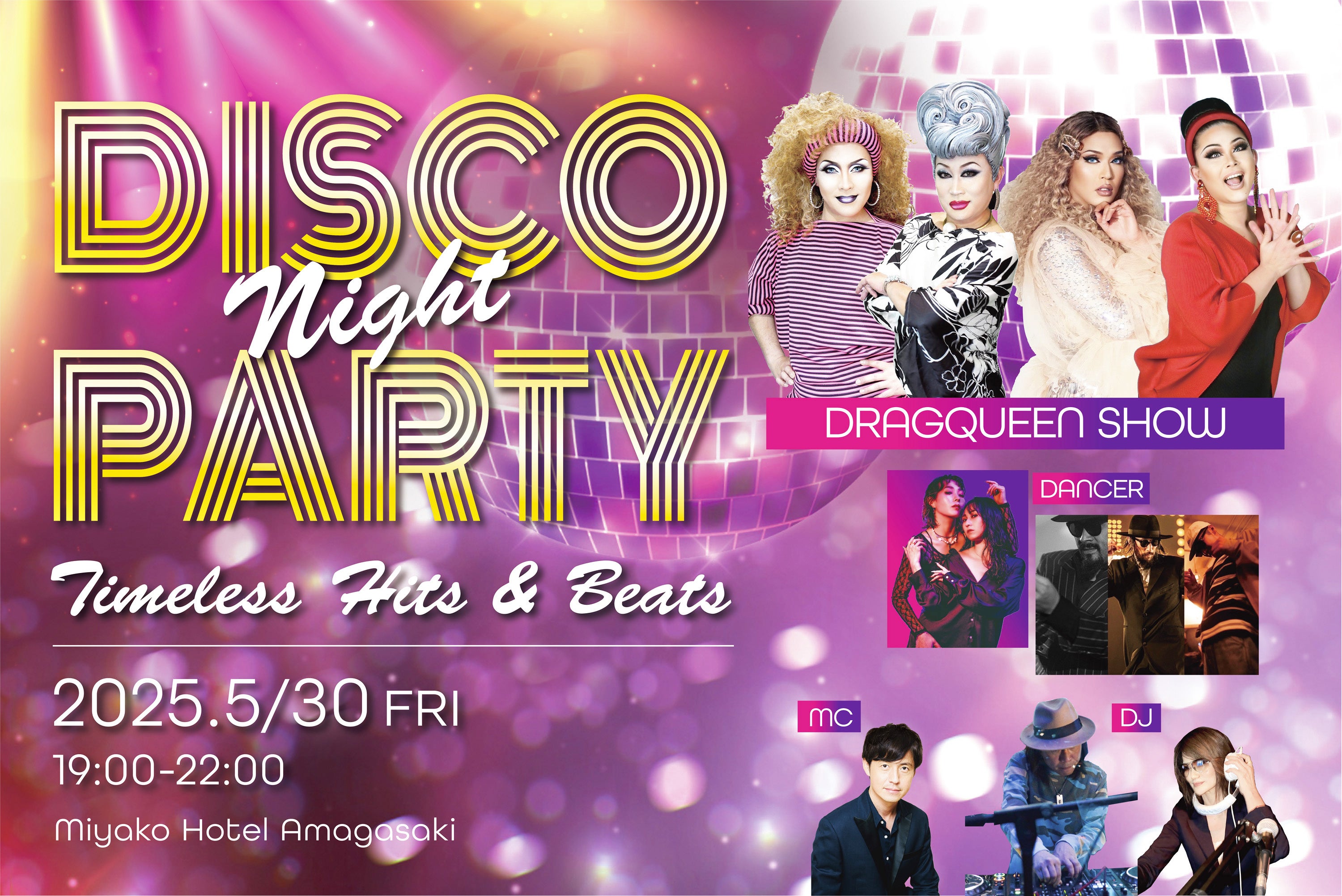 都ホテル 尼崎(所在地:兵庫県尼崎市昭和通2丁目7番1号)は、2025年5月30日(金)に 「DISCO NIGHT PARTY|Timeless Hits & Beats」を開催します。