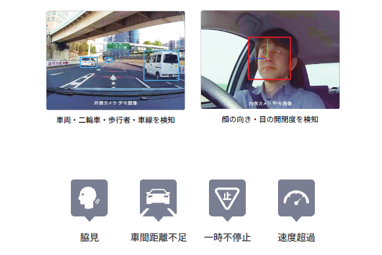 AIとIoTを掛け合わせた交通事故削減支援サービス。常に運転を分析し、わき見・車間距離不足等の事故につながるリスクのある運転行動を発見します。搭載することで、事故率削減や自社車両の修繕費削減で効果が現れたうえ、事故規模の縮小も確認されています。