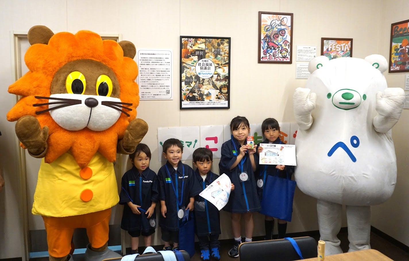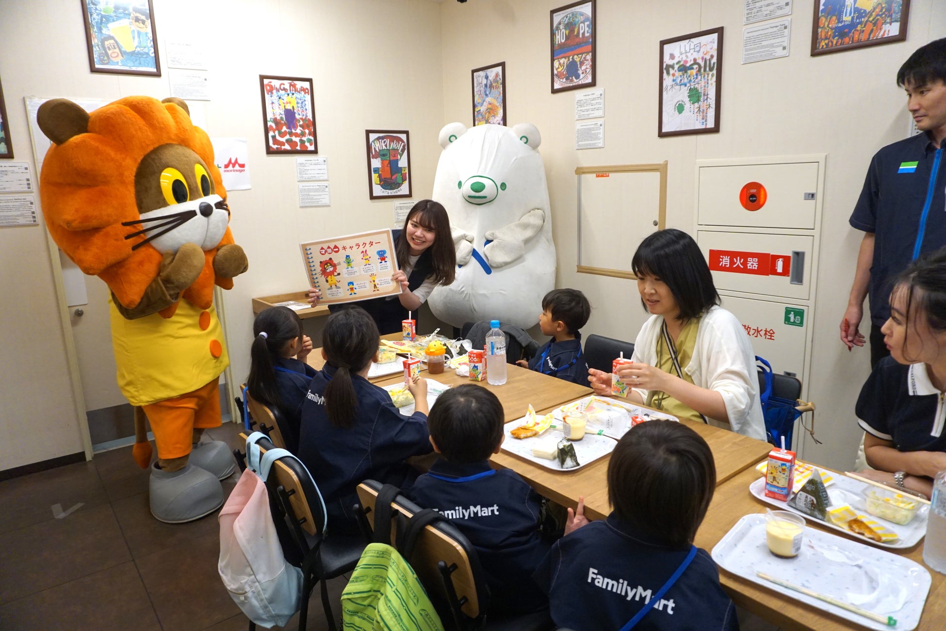 当日は、森永マミーのキャラクター「マミーレオ」とファミリーマートの公式キャラクター「ファミッペ」がサプライズ登場!おこさまたちは一瞬驚くも、すぐに大きな歓声をあげて駆け寄りました。キャラクターたちとの記念撮影やハイタッチを楽しみ、「ふわふわでかわいい!」「会えてうれしい!」と、興奮した様子で感想を話してくれました。会場は一層の盛り上がりを見せました。
