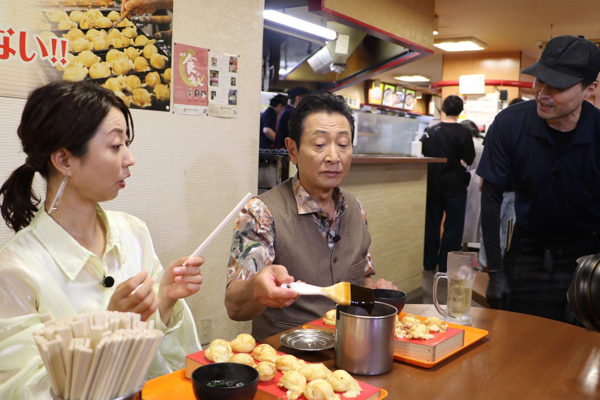 まず、タコピィでは50年以上地元で愛される明石焼風タコ焼きに挑戦。驚きの食感と味わいに満面の笑みで舌鼓を打つ二人。その美味しさにすっかり虜になります。