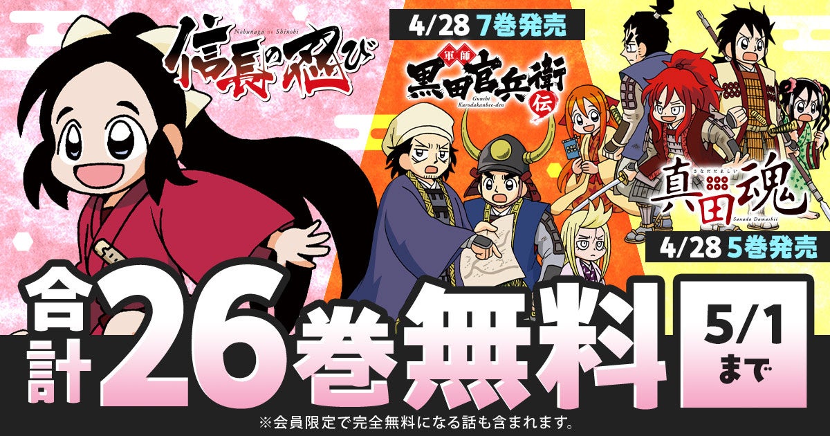 『信長の忍び』『軍師 黒田官兵衛伝』『真田魂』の重野なおき3作品の特大キャンペーンを実施!