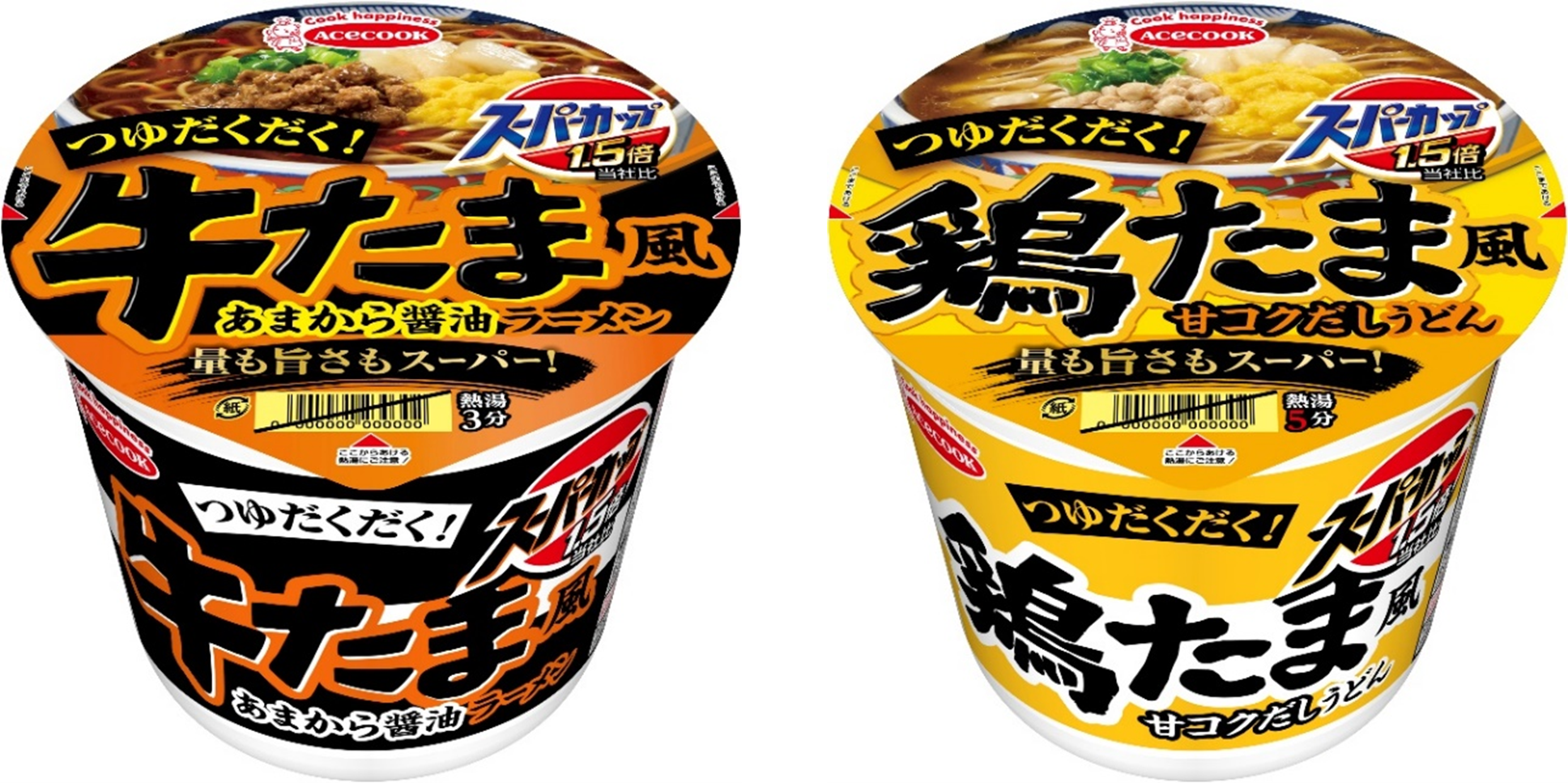 エースコック株式会社(本社:大阪府吹田市 社長:村岡寛人)は、2024年12月16日より、「スーパーカップ1.5倍 牛たま風あまから醤油ラーメン/鶏たま風甘コクだしうどん」を新発売します。