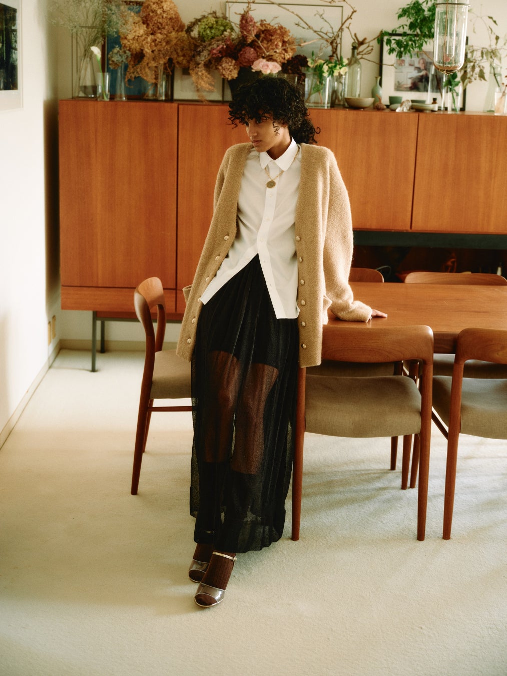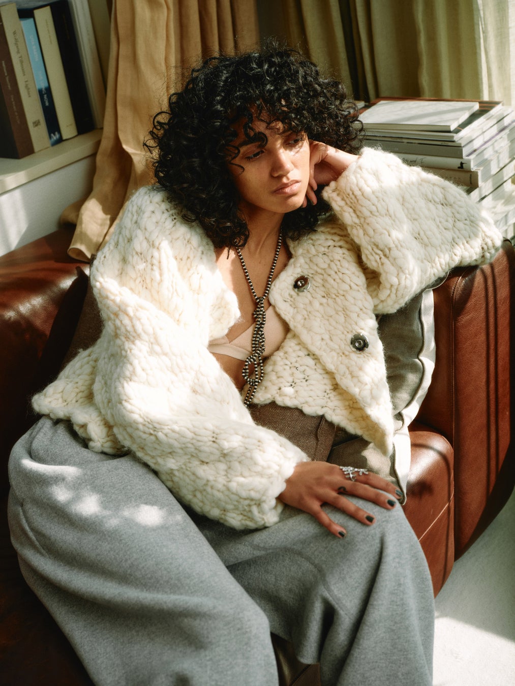 ベビーアルパカ混で、オーバーサイズながら軽い着心地。