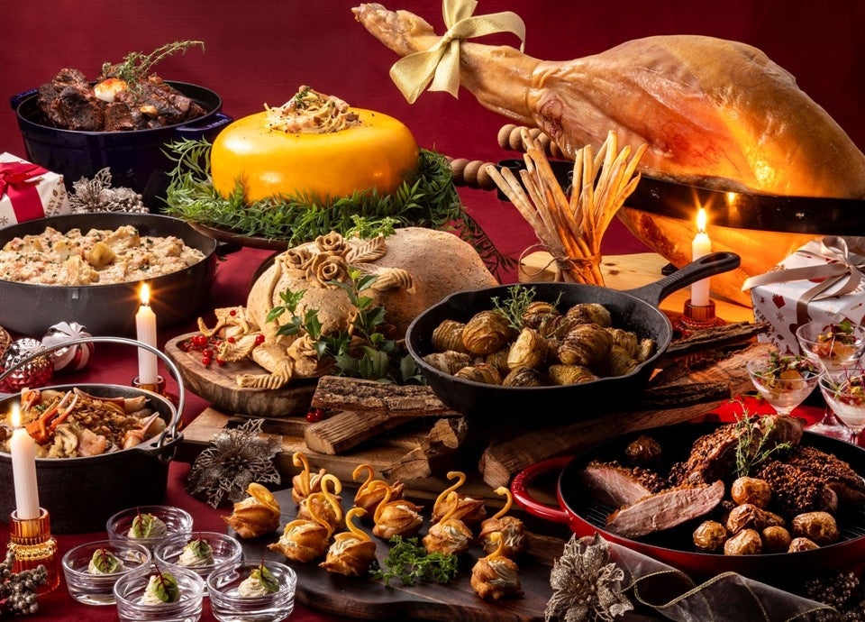 日本唯一の回転展望フレンチレストラン「フレンチダイニング トップ オブ キョウト」では360度広がる古都の夜景を愉しみながら、黒毛和牛やフォワグラ、自家製キャビアなどを使用した極上のクリスマスディナーコースをご堪能いただけます。「オールデイダイニング カザ」のディナービュッフェでは「黒毛和牛とハーブの塩釜焼き」や「チーズの器で仕上げる濃厚カルボナーラ」といったクリスマス特別メニューが登場。約70種のバラエティ豊かな料理が並び、お子様から大人の方まで心躍るひとときを満喫できます。