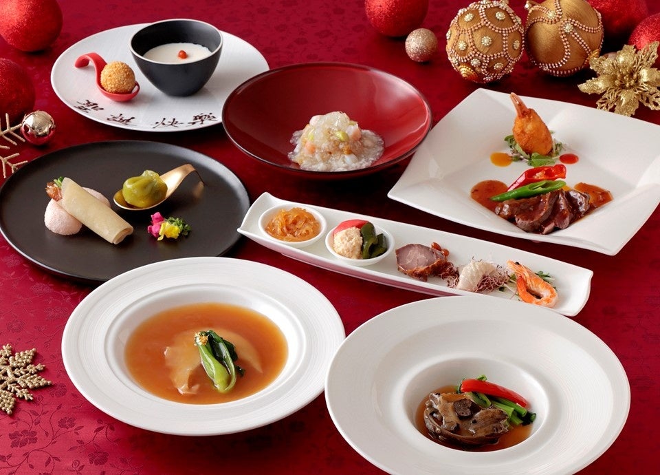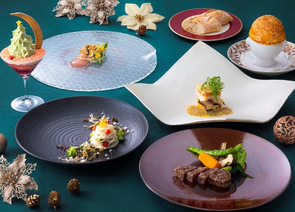 「鉄板焼 葵」では選び抜かれた黒毛和牛や活オマール海老などを目の前で焼き上げ、魅せるライブ感とともにシェフ達の華麗な手さばきから生まれる絶妙な美味を愉しめます。また、「中国料理 皇家龍鳳」では「北京ダックと翡翠海老蒸し餃子」や「牛フィレ肉と蟹爪の麻辣醤(マーラージャン)ソース」など豪華な素材を贅沢に使用し、華やかでクリスマスにふさわしい中国料理のディナーコースをご用意しました。「懐石フランス料理 グルマン橘」ではキャビア・フォワグラ・トリュフの世界三大珍味をコースの随所に散りばめ、クリスマス気分を盛り上げる煌びやかなメニューに仕立てました。洗練した技を目の前に臨むカウンター席で、大人のクリスマスディナーをお愉しみいただけます。