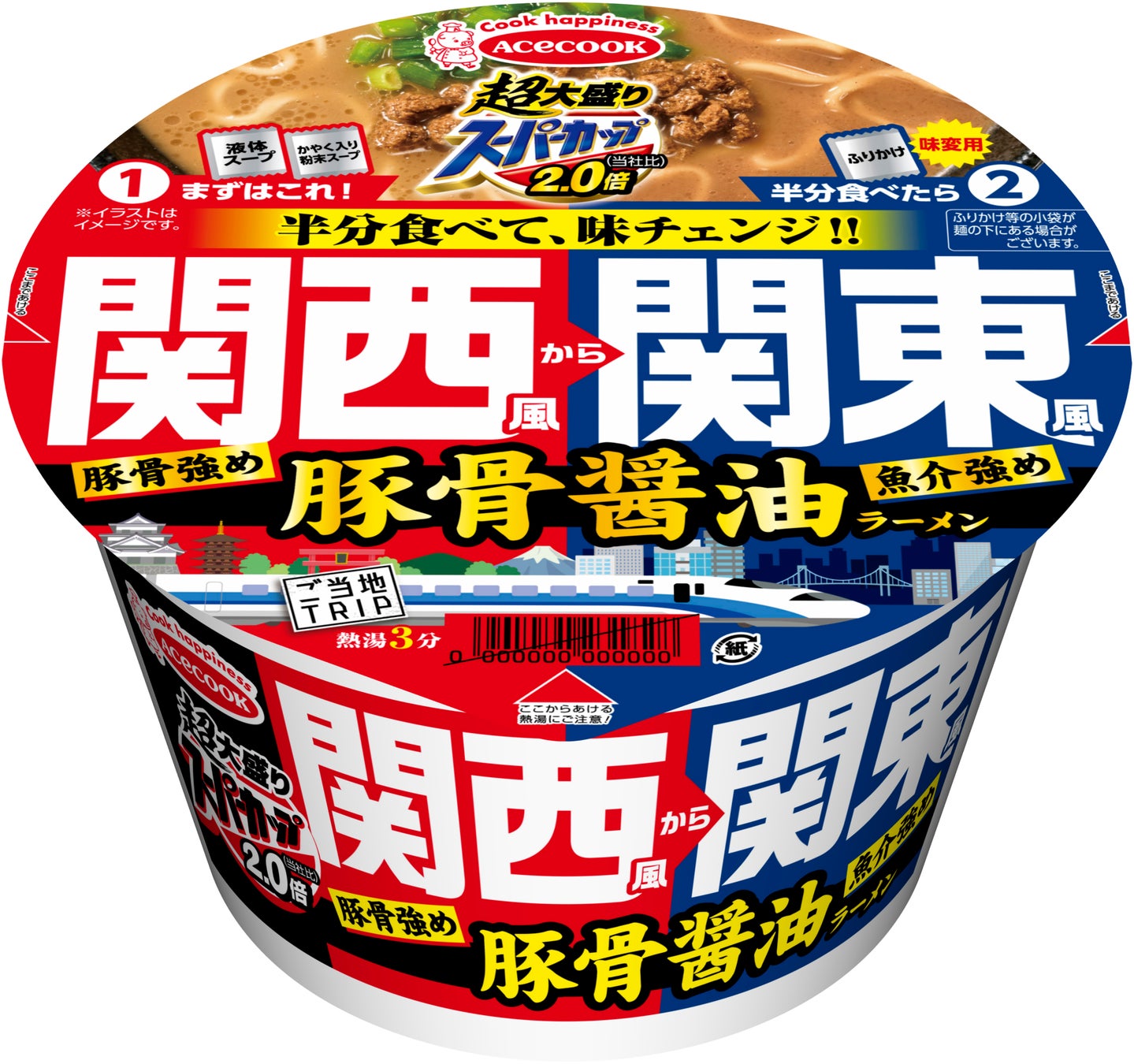 エースコック株式会社(本社:大阪府吹田市 社長:村岡寛人)は、2024年12月16日より、「超大盛りスーパーカップ2.0倍 豚骨醤油ラーメン 関西風から関東風」を新発売します。