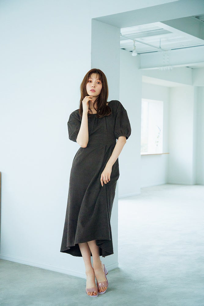 サウナ帰りでも可愛さはキープしたい!八木アリサさんのそんな想いから生まれたワンピース。リラックス感のあるパイル地ながら、パフスリーブやウエストリボンで甘さを加えることで、手抜き感なく気軽におしゃれが叶います。