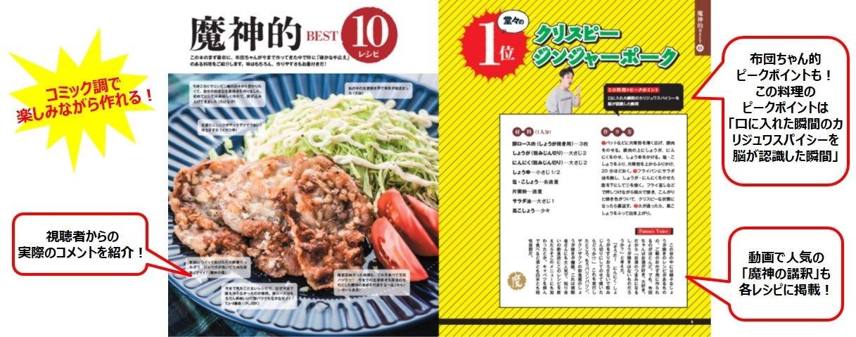 もったいぶった説明がクセになる! 動画でも人気の「魔神の講釈」も各レシピに掲載。楽しみながら料理を作れる!