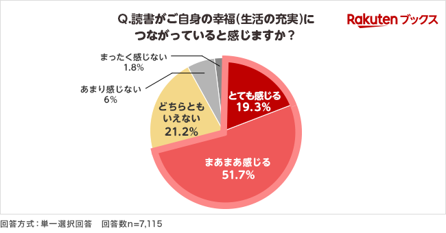 楽天グループ株式会社は、運営するオンライン書店「楽天ブックス」において、“秋の読書週間”(注1)に向け、読書習慣と幸福度(生活の充実度)の関連性についてのアンケート(注2)を実施し、その結果を本日発表しました。