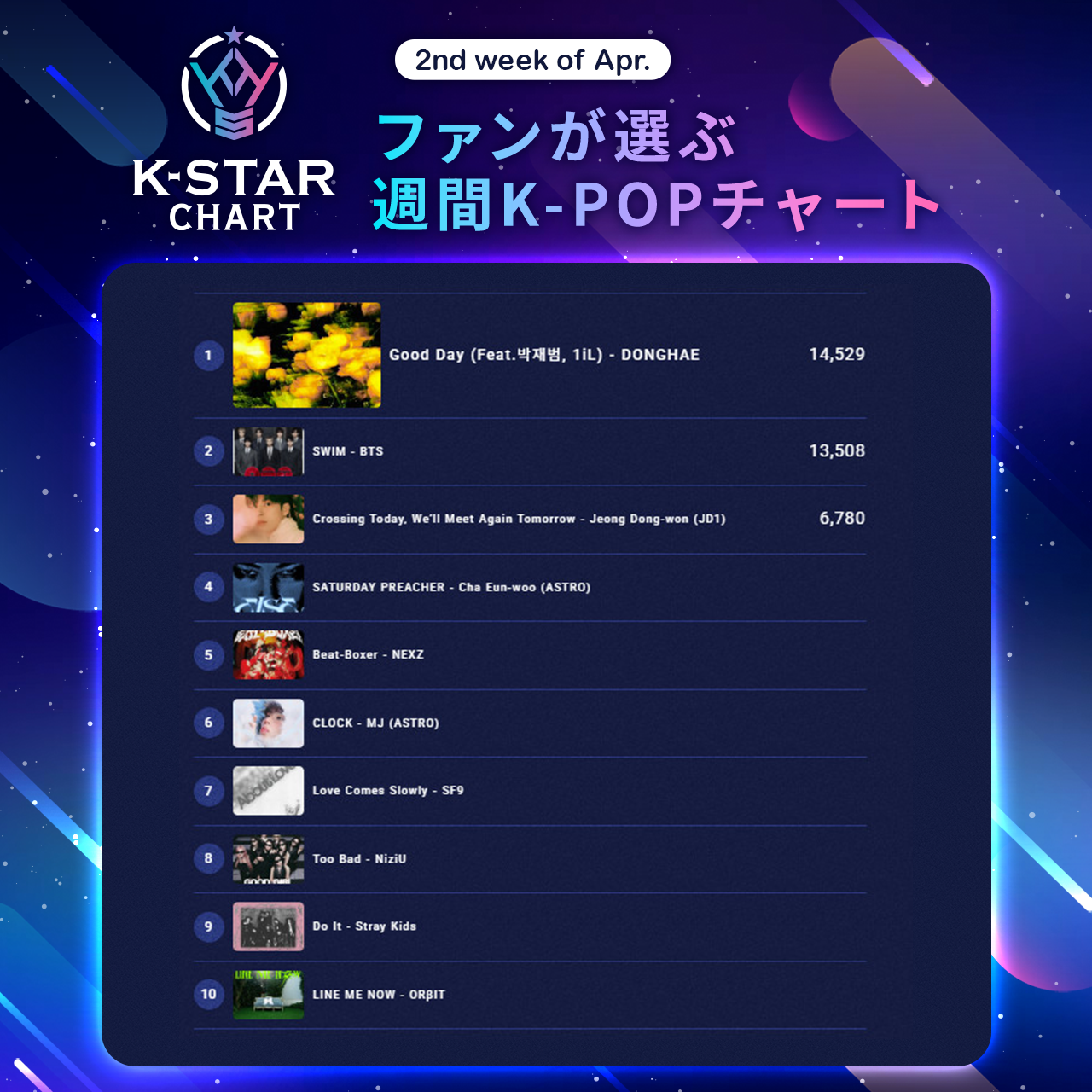 「K-STAR CHART presents POP-K TOP10 Friday」の最新ランキングを発表します!投票期間が【火曜日いっぱい】に変更されてから、上位陣の顔ぶれに大きな動きがありました。激戦を制した注目のトップ3をお届けします。