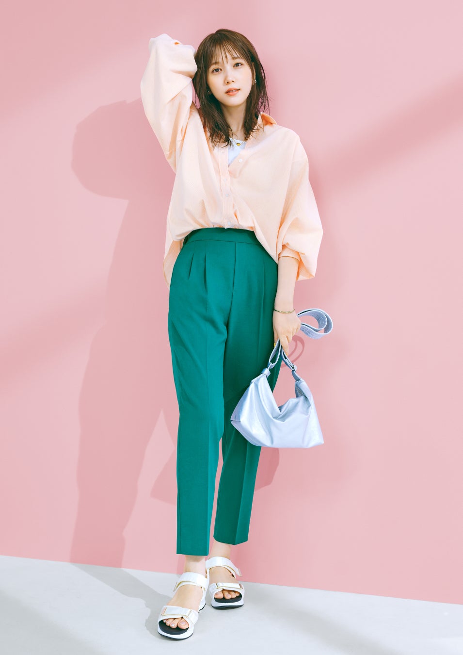 ―新生活は、ドキドキしますよね。新しい出会いもあるし別れもあって、色んなことが起こるので、緊張したり疲れちゃったりすることがすごく多いと思います。だからこそ洋服だけは、ワクワクするとか着やすいとか、「まちがいない!」っていう気持ちになれる洋服を着るのが、心にも、第一印象的にも、大事なのかなと思います。GLOBAL WORKのウツクシルエットパンツは、本当に楽で、ずっと座っていても平気だし、シワになりにくいです。絶対安心感のある洋服を1着持っておくと、すごくいいと思います。おすすめです!