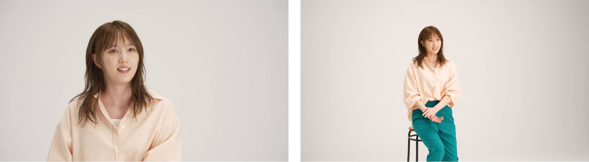 モノクロの背景にラウンド感のあるモニュメントが重なる特別セットの中で、美しく佇む本田さんが歩き出すと風が吹き、徐々に周りがウツクシルエットのキーカラーであるピンク色に色づいていきます。本田さんは、春らしいスタイリングを着こなしながら、気持ちよさそうな眼差しや弾けるような笑顔で、歩いたりターンしたり、華麗に躍動。ラストシーンでは、スタイリング違いの4人の本田さんが、世界観のなかでさまざまな“嬉しさ”を表現しながら立ったり座ったり、歩いたり回ったりし、光を浴びながら、また歩き出します。見ているだけで思わずワクワクしてしまう、本田さんの楽しさや期待溢れる豊かな表情に、ぜひご注目ください!