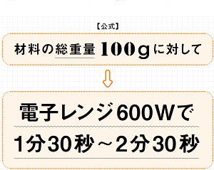 その公式とは、食材+調味料100gに対して1分半~2分半。