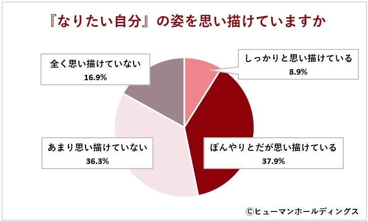 「なりたい自分の姿を思い描けていますか」という質問に対して、思い描けていると回答したのは46.8%でした(「しっかりと思い描けている」(8.9%)と「ぼんやりとだが思い描けている」(37.9%)の合計値)。