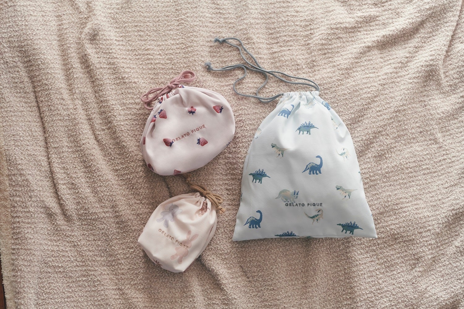 子どもたちの荷物整理に欠かせない巾着は、持ち物や用途に合わせて選べる3つのサイズをご用意。