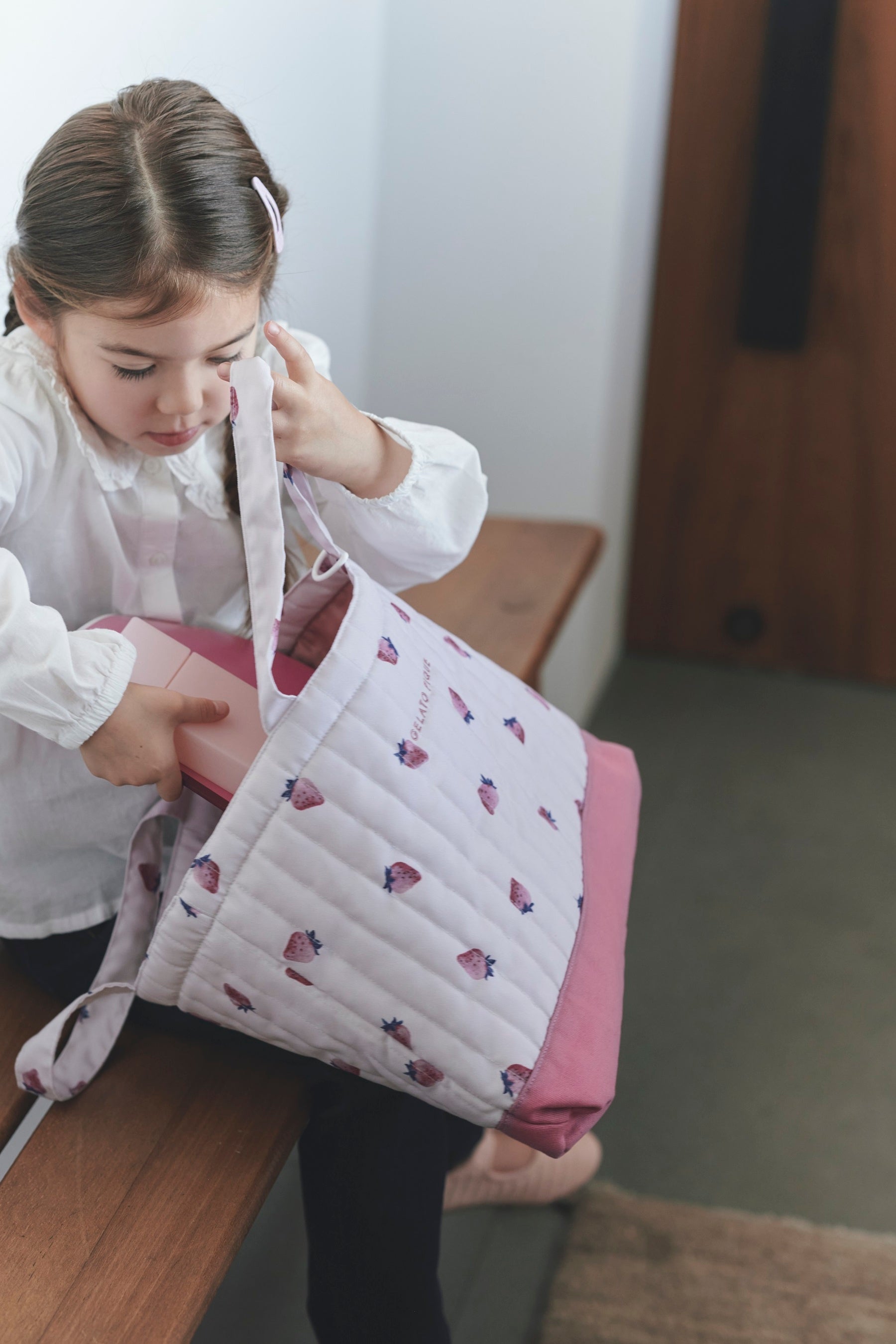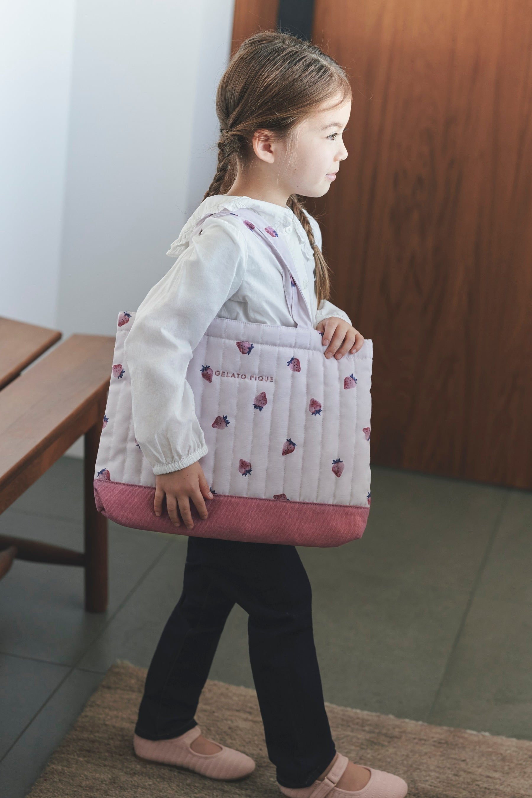 ノートや筆箱、着替えなどもしっかり収納できる柔らかなキルティング生地のトートバッグ。