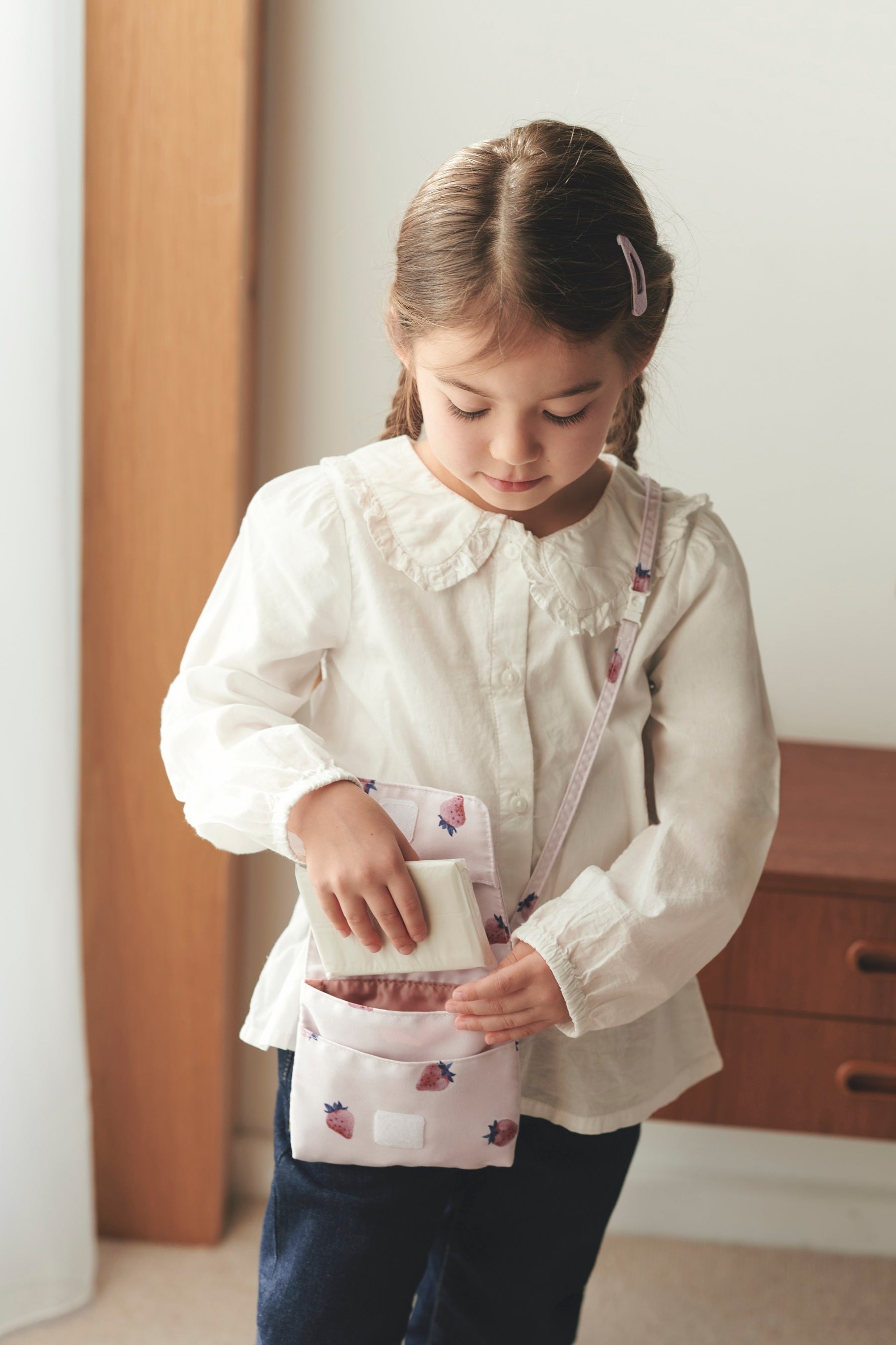 ティッシュやハンカチを入れるミニポーチは、防犯ブザーも収まるゆったりサイズ