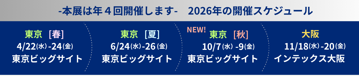 2026年から、東京ビッグサイトで年3回(4月、6月、10月)、インテックス大阪で年1回(11月)