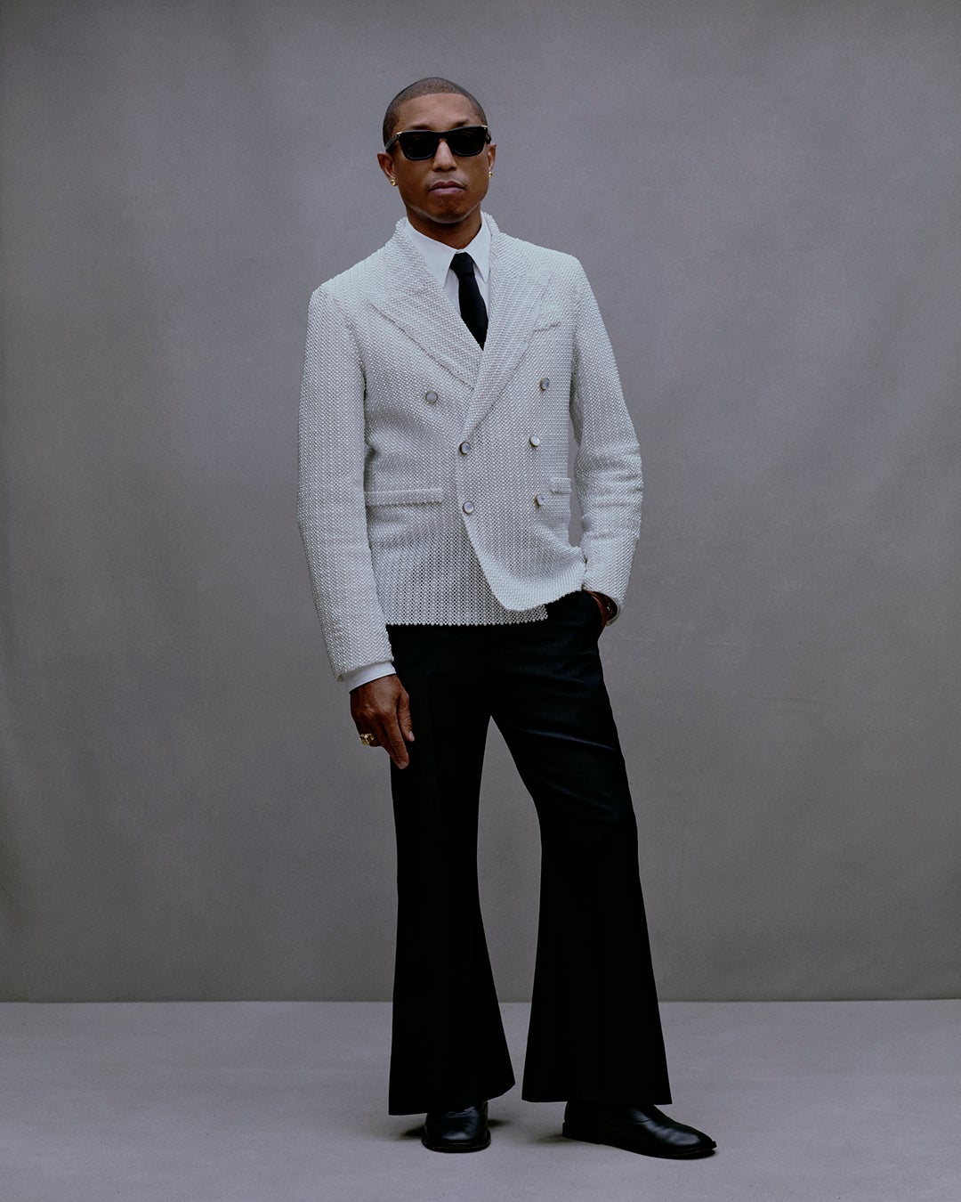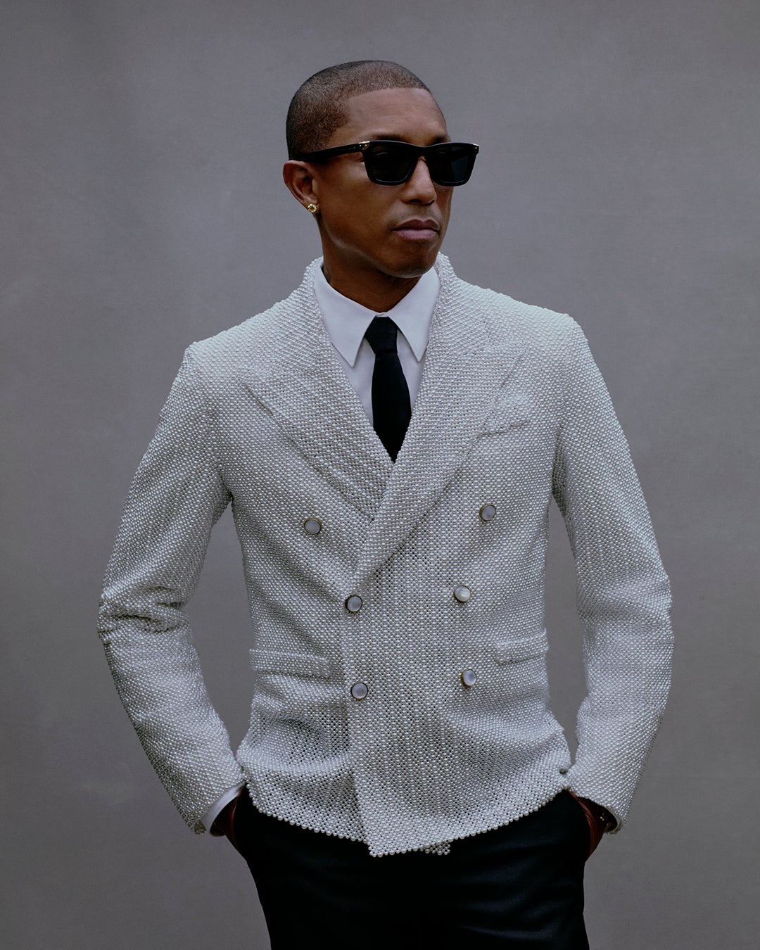 このシルエットは、ファレル·ウィリアムスがルイ·ヴィトンで追求するダンディズムのビジョンを体現しており、ルイ·ヴィトン メンズ·スタジオとそのアトリエによる職人技の粋を示すジャケットは、すべてパールを格子状に編み上げる手作業によって制作されています。ファレル·ウィリアムスがルイ·ヴィトンで2024年春夏に発表したデビューコレクション以来、パールの装飾は「LVERS」思想―洗練された装いを自己変容の手段と捉える考え方を象徴する存在となっており、これはブラック·ダンディズムの哲学にも深く根ざしています。異なるサイズのパールを交差させて織ることで、上質なテーラリングに用いられる生地に見られるピンストライプのような質感が表現され、クロップドジャケットとフレアパンツは、ファレル·ウィリアムスがルイ·ヴィトンで打ち出す特徴的なシルエットを体現しています。なお、このルックに合わせて着用された「LV ジャズ ダービー」シューズは、左右対称のソールラインとフラットなダンディトゥを特徴とする、バターのように柔らかいブラックレザーで作られており、2026春夏メンズ·コレクションのプレビューとして紹介されました。