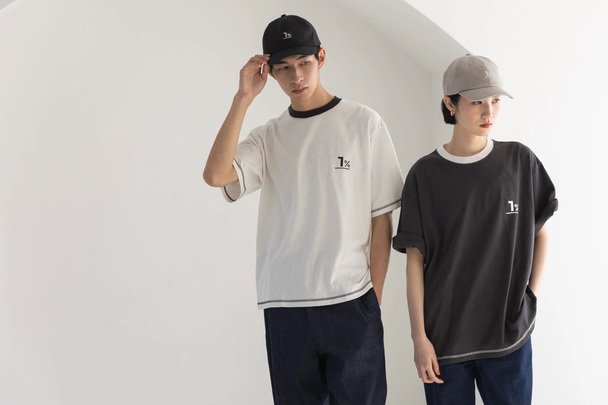 デザインは、まずおしゃれであることと、そして長く愛用できるように飽きのこないものをリクエストしました。Tシャツもキャップも、体のボディラインが出づらいようにオーバーシルエットで、ジェンダーレスを意識しています。「1%」というワンポイントを見て、「たとえ不完全でも、1%だけ行動に移せたなら、その行動は地球にとって1%はプラスになる」ということを思い出してもらえたら嬉しいです。