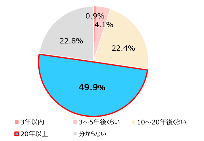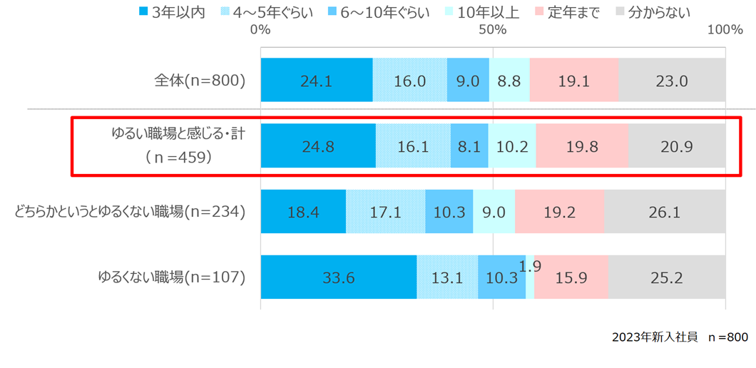【図1】Q.今の会社は何年後くらいまであると思う?(2023年新卒新入社員 n=800)