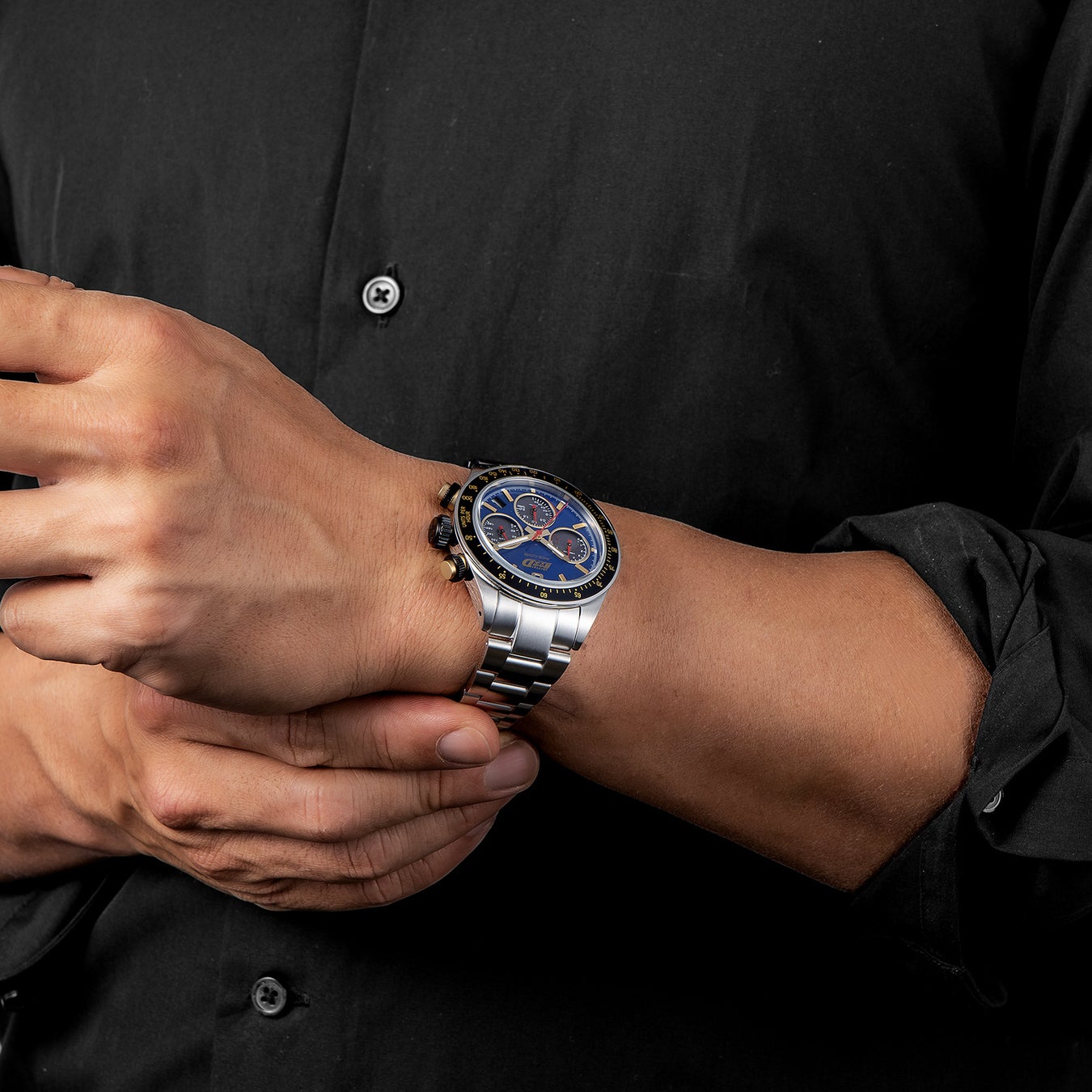 今回登場するのは、「最速の男」藤原文太 SUBARU IMPREZA WRX(GC8) type R STi モデル。数々の峠を制し、伝説を築いた文太の「SUBARU IMPREZA WRX(GC8) type R STi」。その研ぎ澄まされた走りと佇まいを、時計という形に昇華させました。