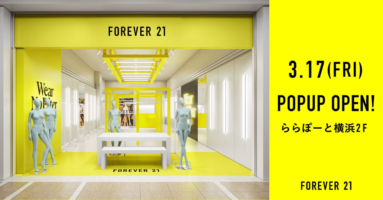 FOREVER 21が大反響の渋谷に続き、ポップアップストア第2弾をららぽーと横浜に3月17日(金)より期間限定オープン!