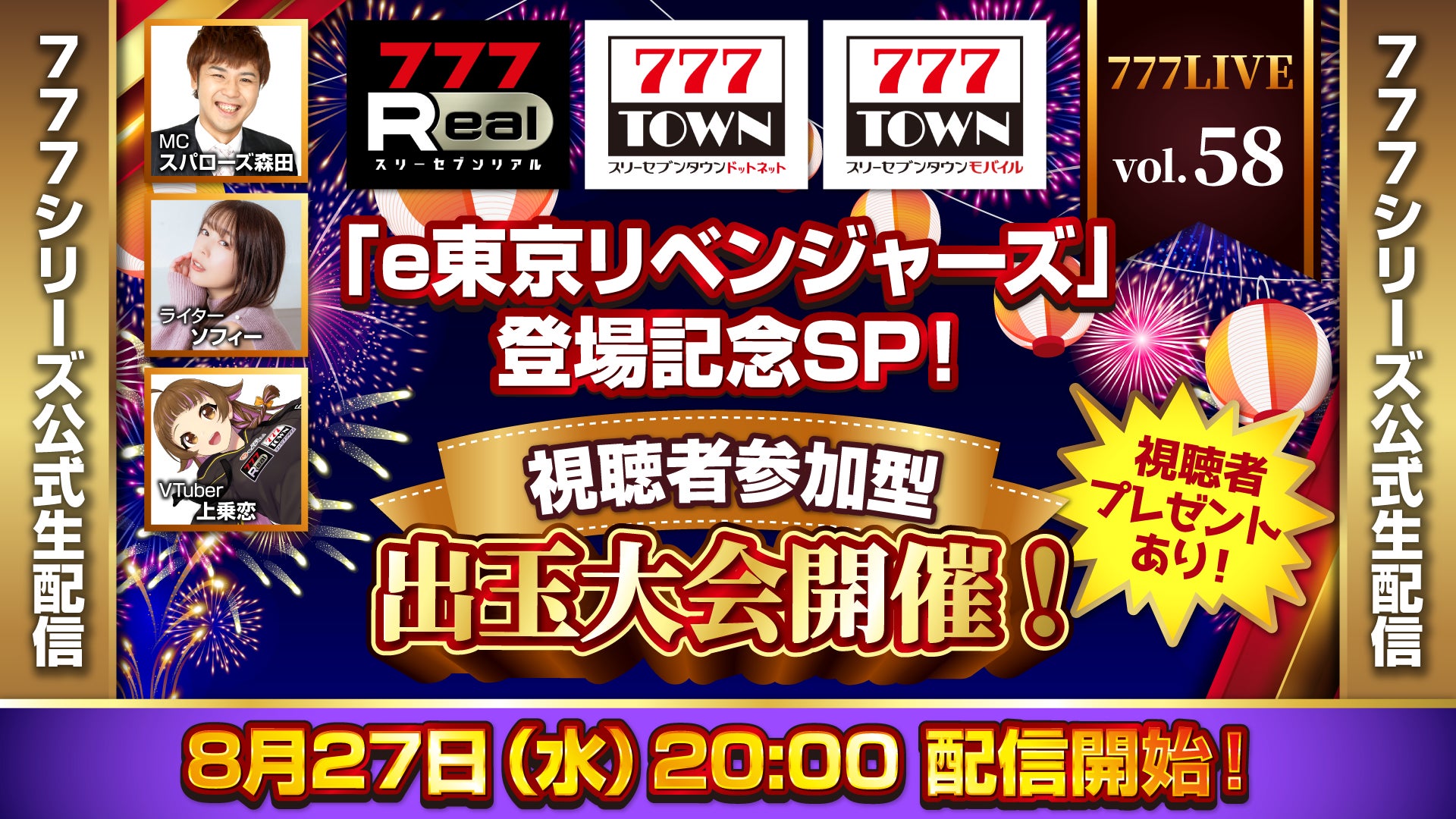 「e東京リベンジャーズ」登場記念SP!8月27日(水)20時から「777LIVE Vol.58」生配信