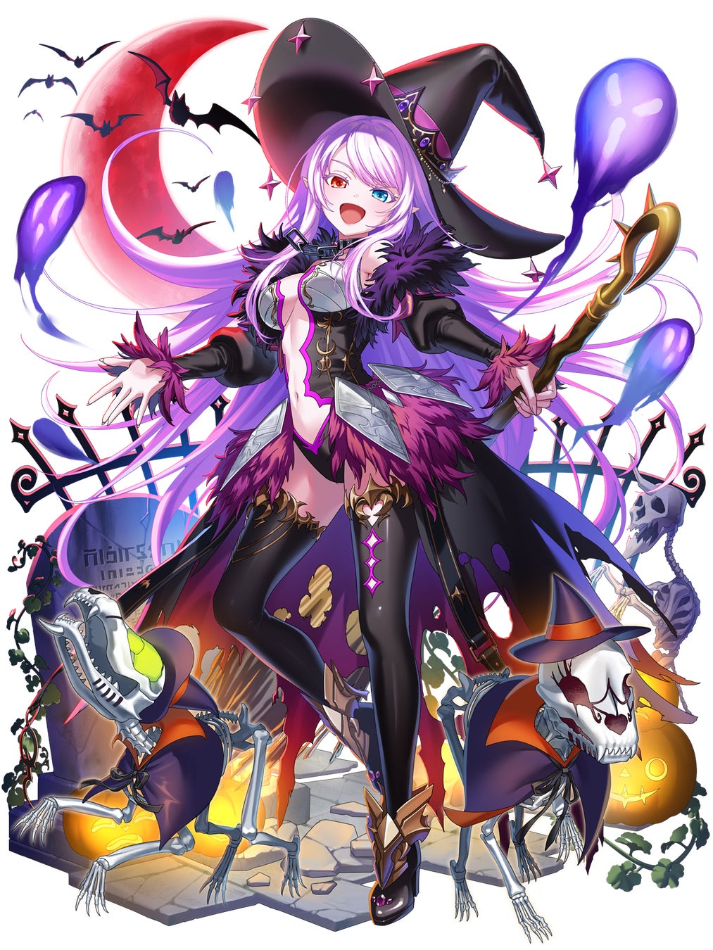 ハロウィンにあわせたイベント「Night of the Halloween Fantasia」を2025年10月31日(金)より開催しております。同時にヴィレス(CV:梅原裕一郎)、アーシュ(CV:上坂すみれ)、イザヴェリ(CV:森千晃)、ルシーニア(CV:浅倉杏美)が登場するガチャも開催中です。また、全12階層のクエストを遊びながらアイテムを集め、報酬を獲得できるイベント「黒ウィズHalloweenミュージアムⅢ」や、期間中に1日1回まわせる「ハッピーハロウィン記念 100連無料ガチャ」も開催しております。ぜひこの機会に『黒猫のウィズ』を遊んでみてください。