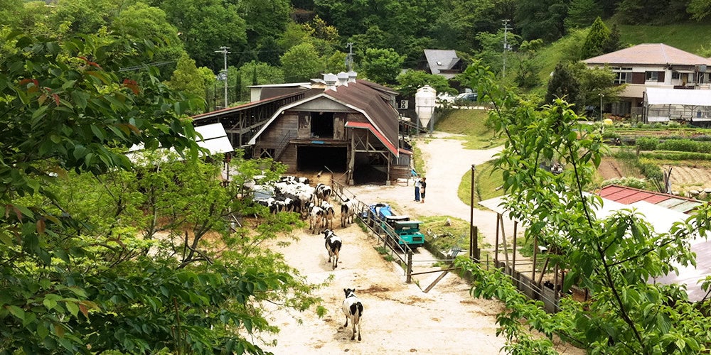 1943年創業。弓削牧場は、標高400mの裏六甲の豊かな自然に囲まれた場所に位置。都市近郊で牛の生態を可能な限り考慮した健康的な飼い方を大切にしながら牛乳をしぼり、乳製品を製造。また、野菜やハーブ、牛ふん堆肥の製造、ホエーの利用、養蜂、バイオガスなど、オンリーワンの酪農を目指し、様々な可能性に挑戦し続ける牧場です。