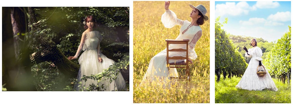 撮影の感想を伺うと「『ゼクシィ』の表紙を飾るのが夢だったので、すごく嬉しかったです。あとウエディングドレスを着ることができて楽しかった。また、軽井沢での撮影だったので、自然の香りを感じることができて癒やされました。国内で結婚式挙げるなら軽井沢がいいなと思いました」と語ってくれた藤田さん。実際の式で着たいドレスについては「王道のふわっとしたプリンセスラインの白のドレスを着て、お色直しでは、大好きなキャラクターと同じ色のイエローのドレスを着るのが憧れです」と具体的に教えてくれました。