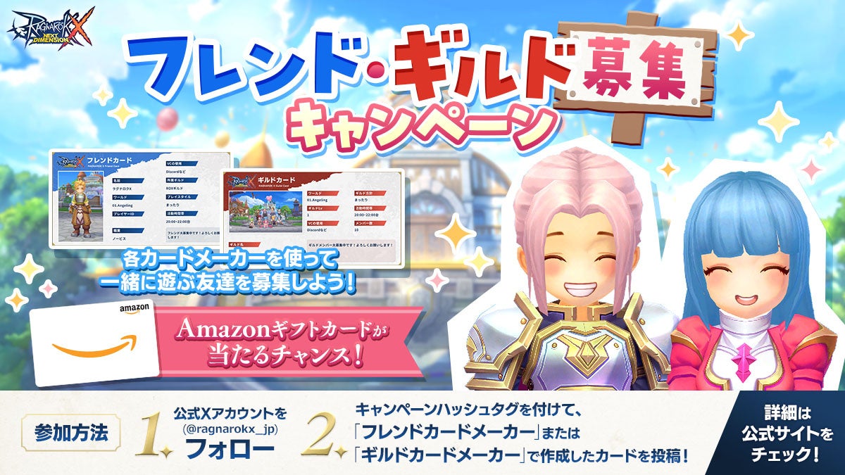 『ラグナロクX』公式サイトにて展開している「フレンドカードメーカー」「ギルドカードメーカー」にて作成した「フレンドカード」「ギルドカード」の画像を各応募コースのキャンペーンハッシュタグをつけて投稿してください。