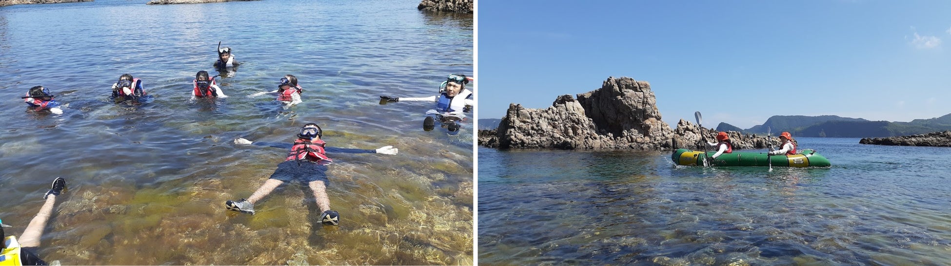3日間の体験の中で最も印象に残っていることに、多くの子どもが無人島でのシュノーケリングを挙げました。シュノーケルと水中スクーターで海中さんぽ。海底の緑や白、赤など様々な色をした海藻や、サザエ・アワビに代表される隠岐の貝類を観察したことは「これまで見たことがない世界が広がっていた!」「本当にキラキラしていて別世界。また来たい!」「貝や海藻が少なくなっている現状が分かり、その原因の一つとして地球温暖化があることがわかった。節電など地球温暖を抑制できる取組を家族やクラスの友達ともやっていきたい」などの声が聞かれました。