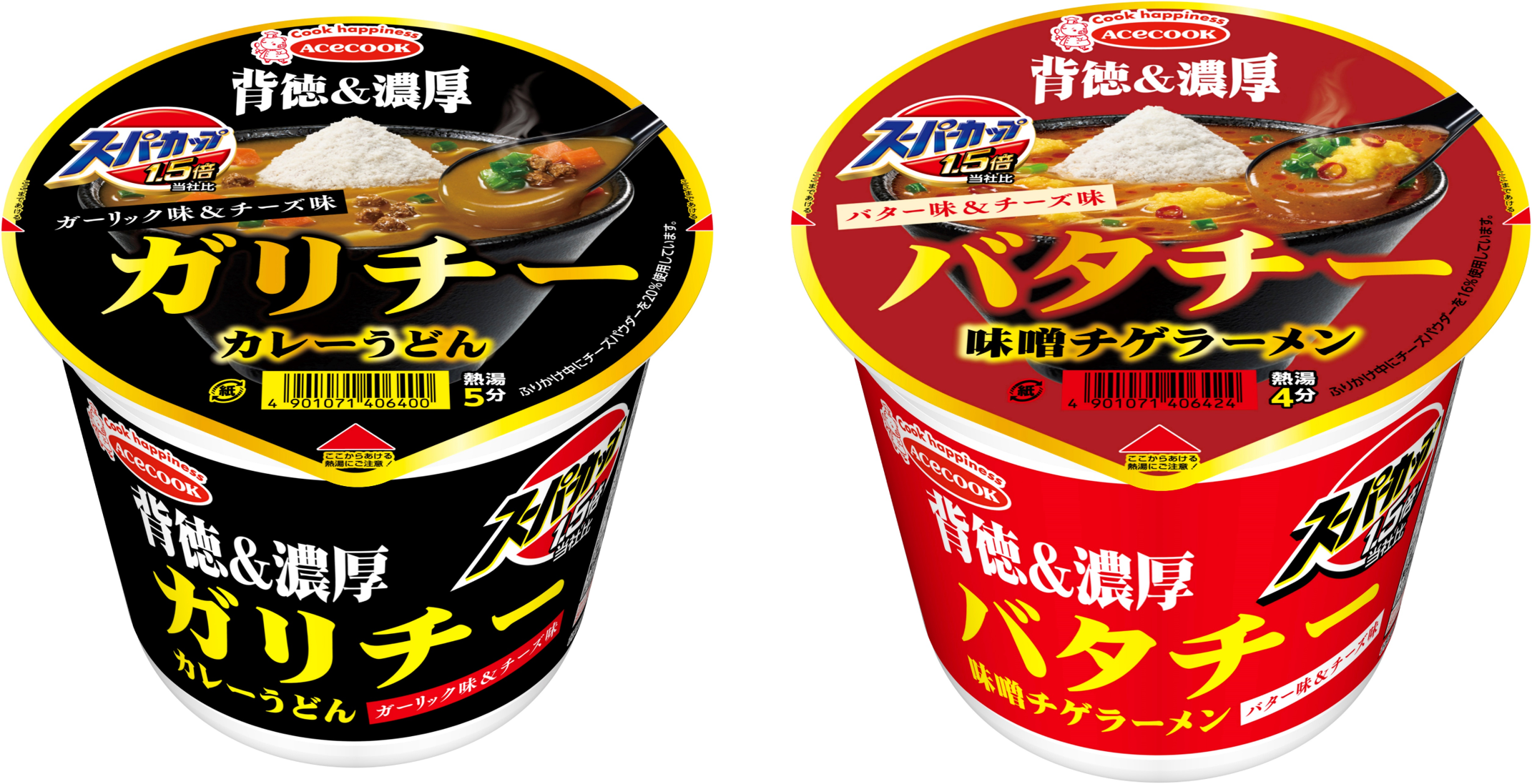 エースコック株式会社(本社:大阪府吹田市 社長:村岡寛人)は、2025年1月20日より、「スーパーカップ1.5倍 ガリチー カレーうどん/バタチー 味噌チゲラーメン」を新発売します。