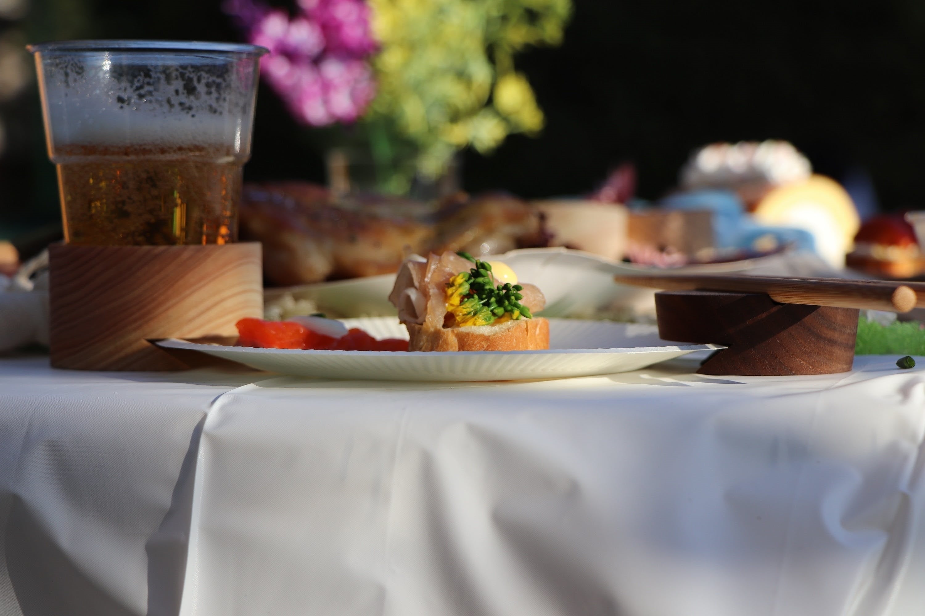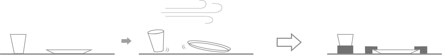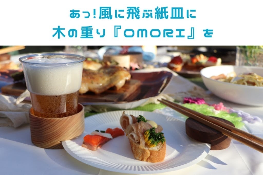 バーベキューなどで使用する紙皿や紙コップが少しでも風が吹くと飛んで行ってしまう…。軽すぎてすぐにひっくり返る…。箸を置いたら転がってしまって、箸が無駄に…。などの「ちょっと困った」を解決し、快適にするために誕生したのが『OMORI』です。無垢の木を使用して作った多様性のある木の重りで、円形の「ドリンクホルダーになる重り」「箸置きになる重り」の2つのパーツから成ります。これらの重りの下部にある溝に紙皿を挟み込むと、皿を固定できる優れものです。