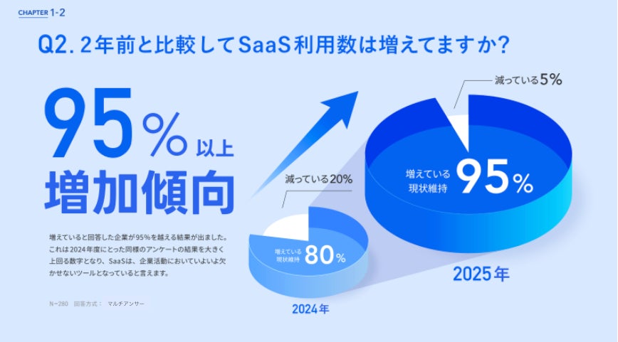 SaaS利用は2年前と比較して95%が増加傾向、SaaSは企業活動の“当たり前”に