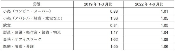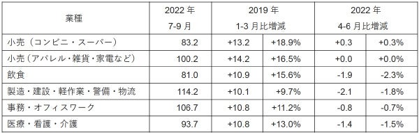 ・度重なる行動制限の影響を受けて他業種への移動が見られた飲食業のシフト人数も2022年4-6月比で微増しており回復傾向