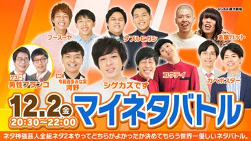 概要:ネタ神強芸人全組ネタ2本やってどちらがよかったか決めてもらう世界一優しいネタバトル。この中からチャンピオンが現れる可能性が異常に高いですし何より全体的にかわいいのでよろしくお願いします!